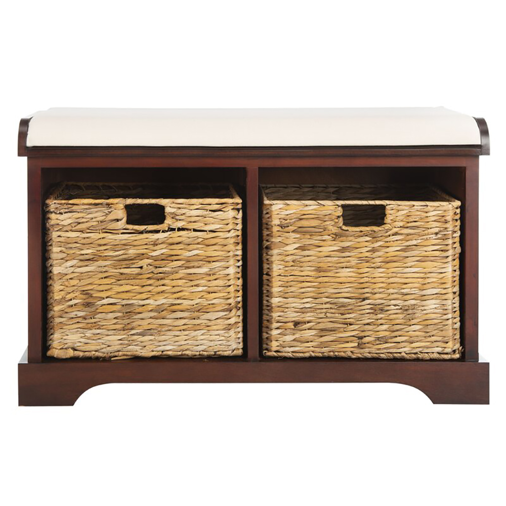 The Cherry Basket 2-Drawer Storage Bench, a charming and practical addition to your home. This versatile bench has a sturdy pine wood frame and a comfortable linen upholstered seat, providing a cozy spot to sit back and relax.