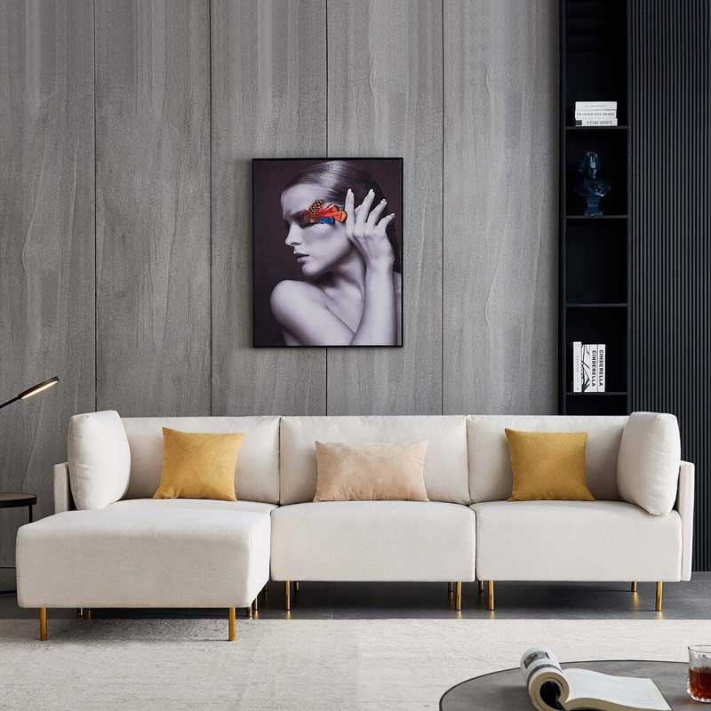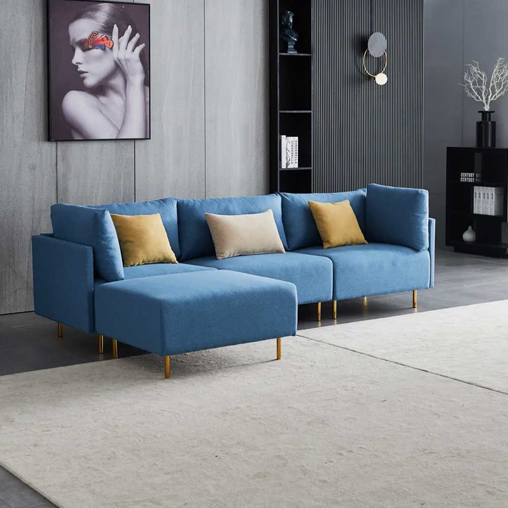 Elevate your living space with the contemporary charm of the Govea Sleek and Stylish 4 seater Sectional Sofa. Designed with clean lines and a minimalist aesthetic, this sectional sofa improves any modern home decor. The sofa consists of four modular pieces, allowing you to customize the arrangement to suit your unique needs and preferences.