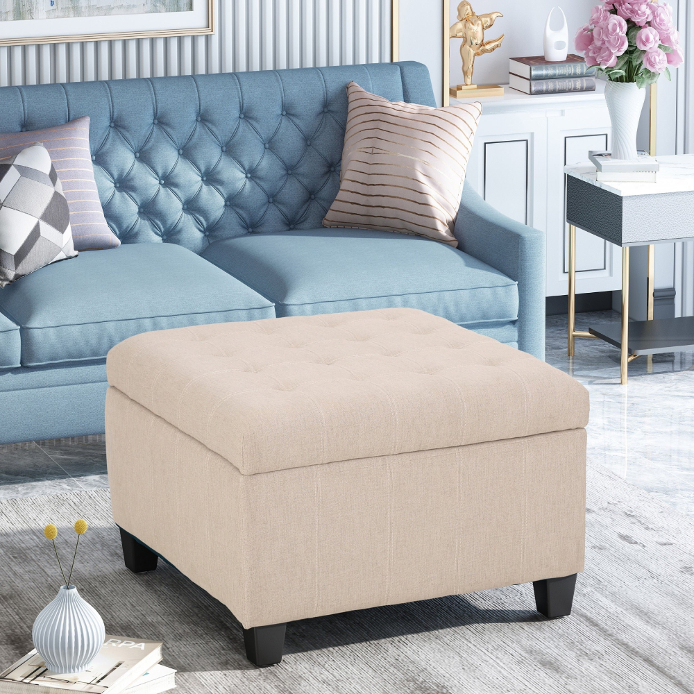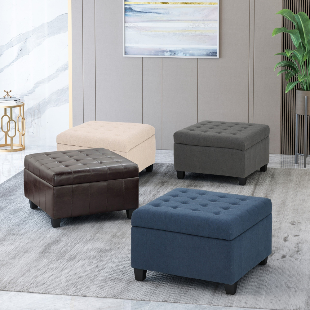 Enhance your home decor effortlessly with the Modern Fabric Tufted Ottoman with Storage. This versatile piece is designed to elevate your living room style while providing a practical storage solution.