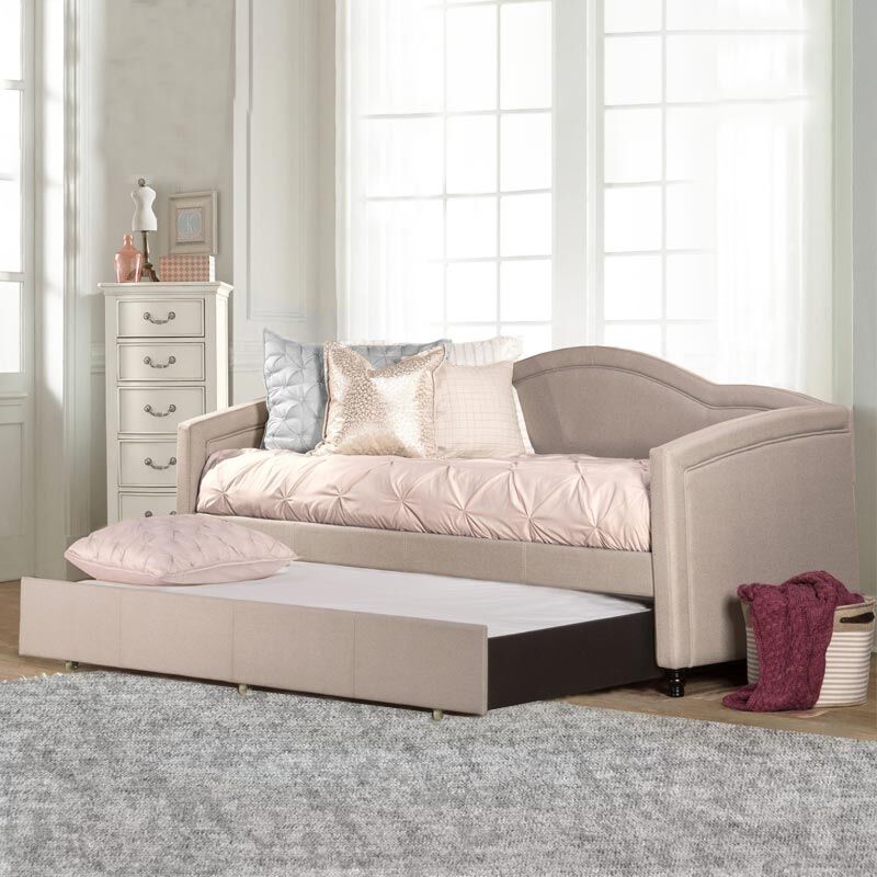Our Jasmine Daybed Fabric Upholstered with Trundle, the ultimate space-saving solution for your bedroom. Maximize your floor space with this versatile daybed and matching trundle bed. During the day, simply stash the trundle underneath to create more room, and effortlessly pull it out when it’s time to sleep.