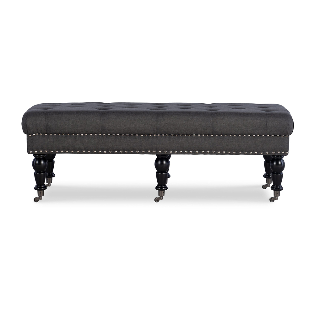 Experience the luxury and beauty that the Francesca Dark Grey Tufted Bench offers. Elevate your home decor with this comfortable furniture piece. Infuse your living space with an air of elegance and sophistication while creating an inviting ambiance for your guests. Delight in the comfort and style of this bench making a statement, in your home. Place your order today to transform your space with the Francesca Dark Grey Tufted Bench.
