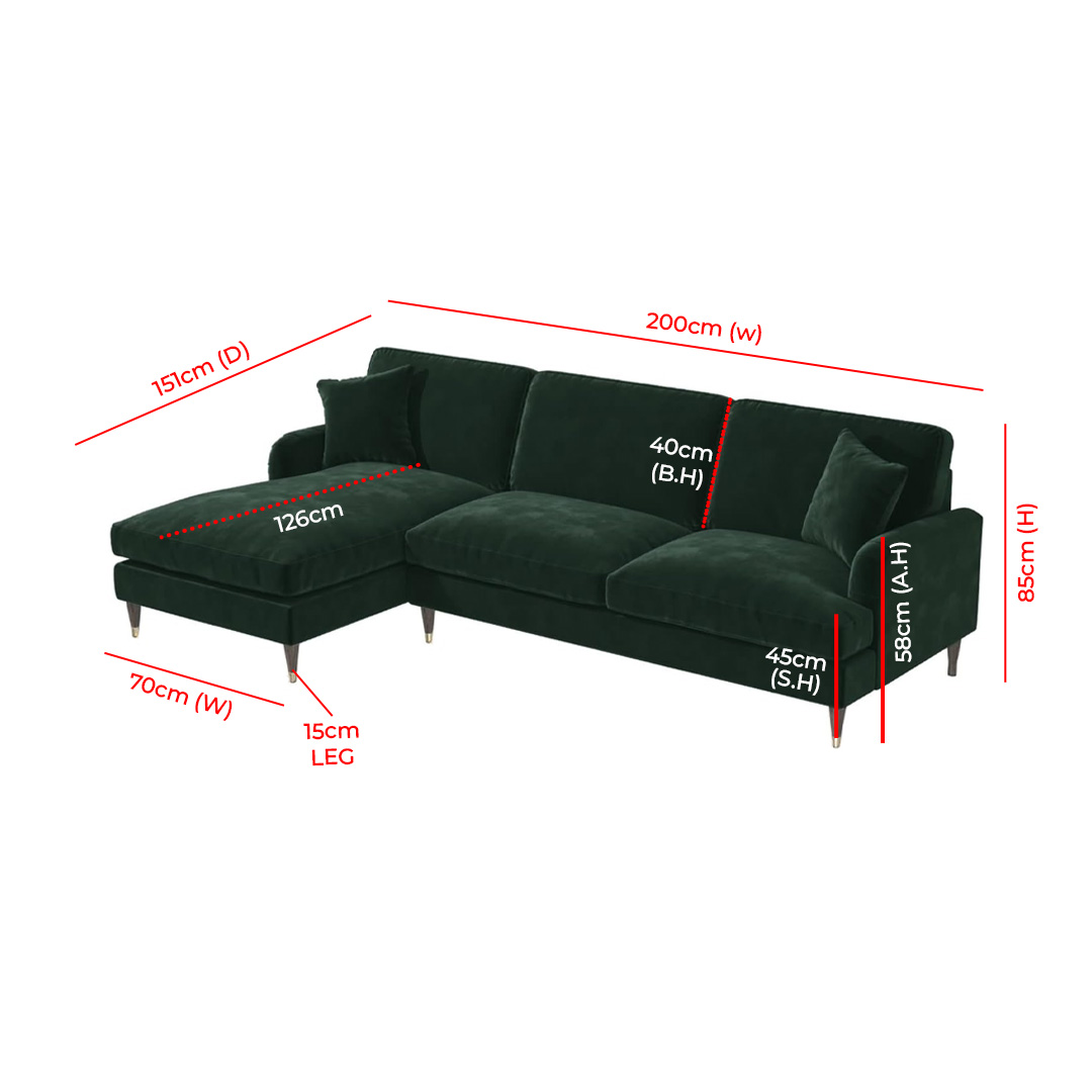 Introducing Paragon’s 3-Seater L Shaped Sofa in Velvet, a stunning addition to elevate your living room. The rich Green velvet upholstery adds a touch of luxury and style to your space, making it a standout feature.