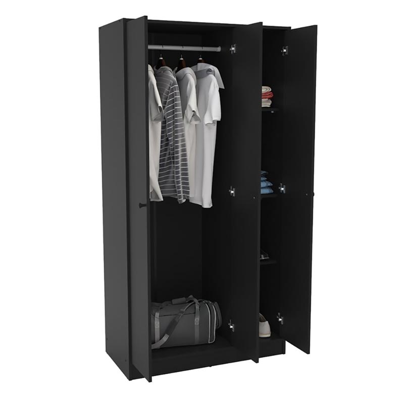 Featuring a clever design, this Wardrobe offers concealed storage options. The left side includes a two-door cabinet with a clothing rod inside, providing a designated space to hang your shirts, pants, and jackets, keeping them wrinkle-free and easily accessible.