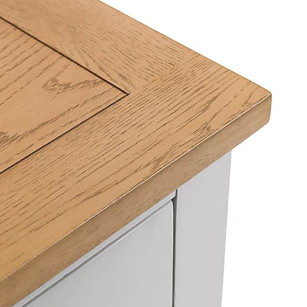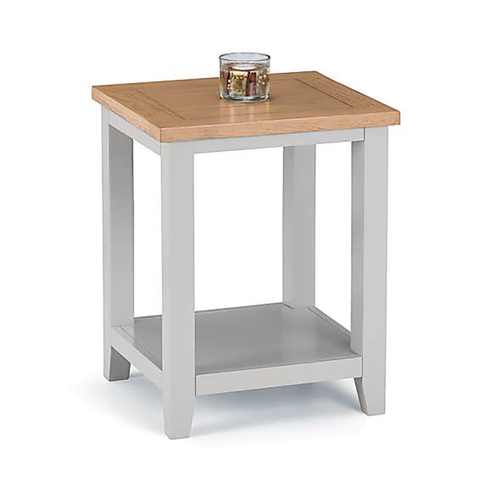 This Richmond Bright and Cozy Side Table will enhance your living area. The side table has a built in lamp which creates an inviting and warm atmosphere. Elephant Grey is a beautiful finish on the table that contrasts nicely with its pale oak top. This table is timeless because of its classic design and high-quality materials. This table is perfect for displaying your favorite items or reading, whether you are looking to relax, read, or just display some of your favorites.