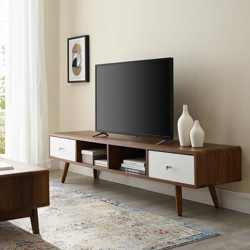 Modern TV Unit Binging that latest show, settling in for a movie night marathon, or just catching up with the news: whatever you use it for, your TV is a centerpiece in your home, so give it the perfect perch with a piece like this! Ideal for a touch of mid-century style, Designed with functionality in mind, this TV unit offers ample storage space for your media essentials. It features compartments and shelves that can provide gaming consoles, DVD/Blu-ray players, and other media devices. Keep your entertainment area organized and clutter-free, allowing for a seamless and enjoyable viewing experience.